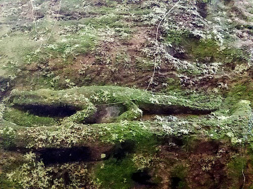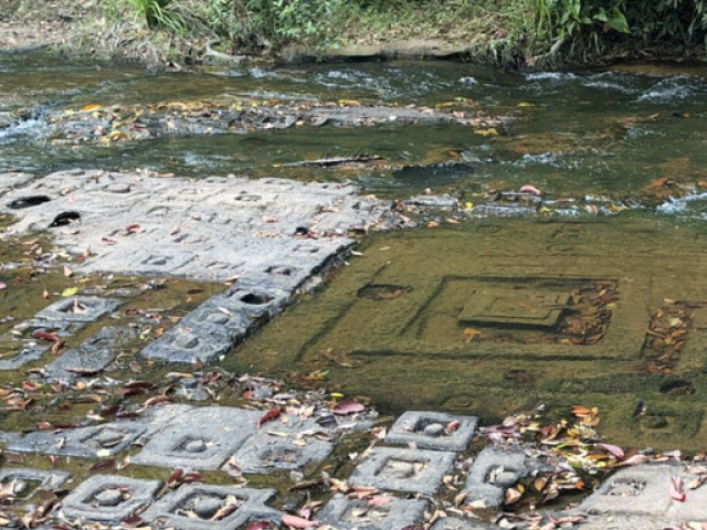 川底や岩肌に、自然の中に溶け込むように、無数のレリーフが美しく彫り込まれています。