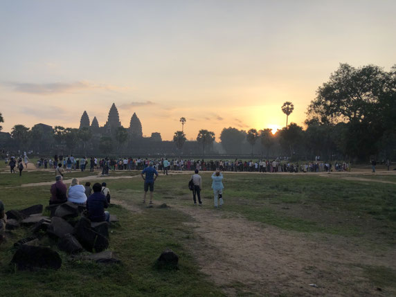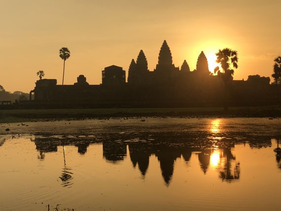 今日はサンライズをご案内させて頂きました。今日はサンライズすごくきれいでした。観光客が特に日本人はカンボジアに旅行したらみんないつも朝日を見に行きます。