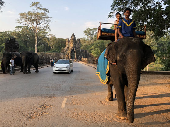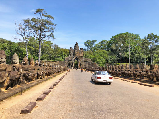 今日はアンコールトムをご案内させていただきました。アンコールトムはシエムリアップ町の北約5キロぐらいです。アンコールトムはカンボジアの旧市街でございます。毎日観光客が多いです。