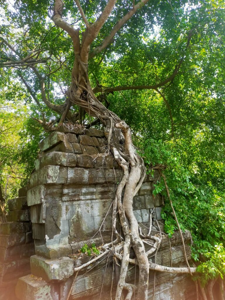 実は、シェムリアップにあるジャングル遺跡はベンメリアだけではありません。かつてカンボジアの都がプノンペンへ移されたあと、この地域は約400年以上にわたり放置されていたため、多くの遺跡が密林に覆われてしまったのです。あの有名なアンコール・ワットやアンコール・トムも、長い間ジャングルの中に埋もれていたんですよ。