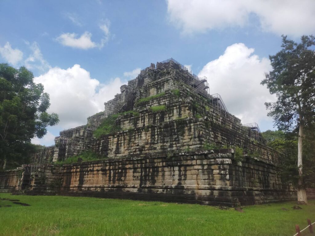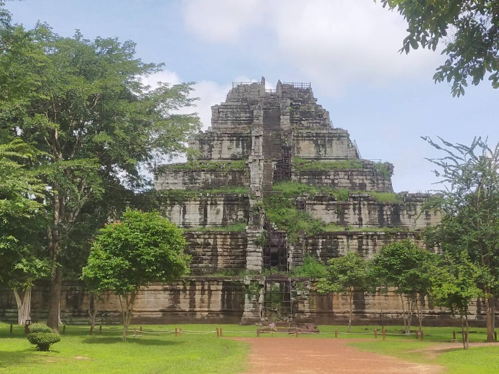 コーケー遺跡は921年にジャヤーヴアルマン4世によって建てられたヒンドゥー教の遺跡でございます。シエムリアップ町120キロぐらいです。ジャヤーヴアルマン4世は921年にコーケに移動して、928年から941年まで在位されました。その後はハルシャヴアルマン2世と言う息子が3年間在位して、次の王様がラジェンドラ2世と言う王様コーケーからアンコールエリアに戻りました。コーケーエリアは元々はリンガと言う男性器が多かったので、リンガプラと呼ばれました。リンガプラと言うのはリンガ町という意味です。この遺跡はメキシコに有るピラミッドの遺跡に似ていると思います。この遺跡はカンボジアの4番目の世界遺産です。2023年9月17日世界遺産に登録されました。