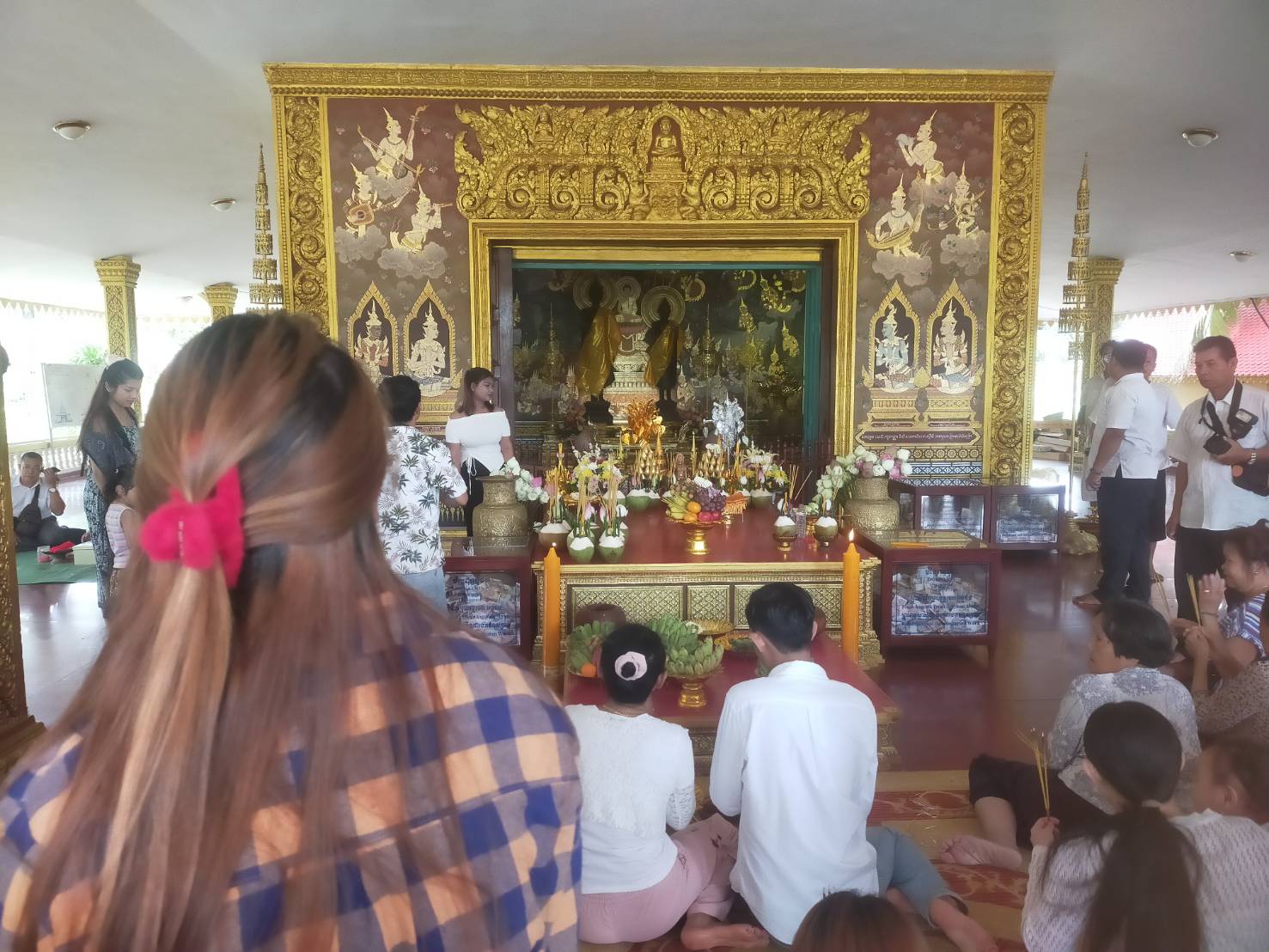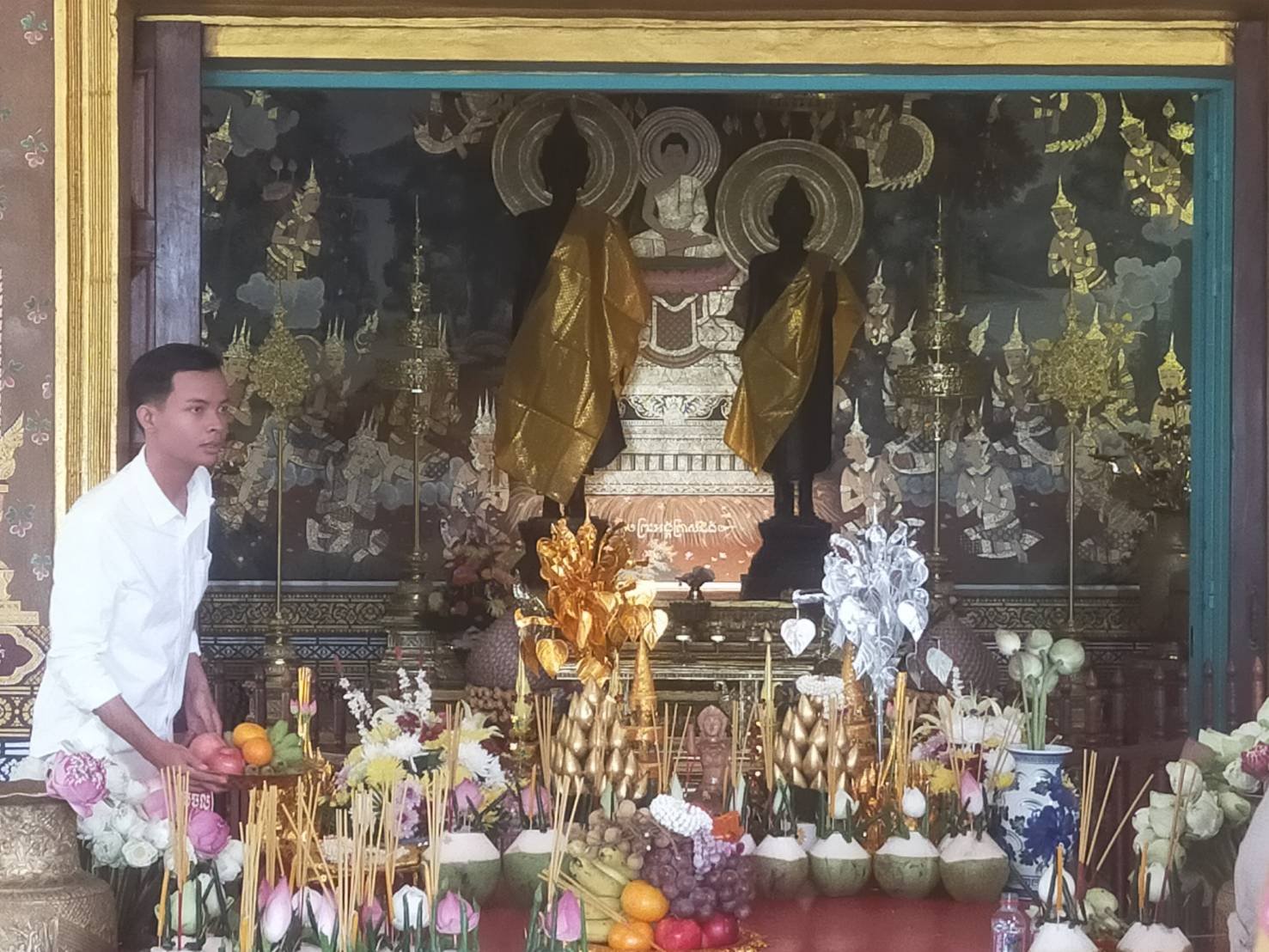 アンコール・チャムの祠を守る長老たちによると、アンコール・チャムはタイ・シーの日には、近隣から遠方まで人々がココナッツ、お香、ろうそく、花を買い求め、アンコール・チャムに祈りを捧げ、幸福を祈願するそうです。アンコール・チャムの中には、幸福を祈るために2、3曲の琴を奏でる人もいます。普段もタイ・シーの日と変わらず、多くの人が訪れます。アンコール・チャムの力は強大で有名であるため、クメールの人々は仏教を敬い、信仰しています。そのため、人々はアンコール・チャムに祈りを捧げ、幸福を祈願するのです。
