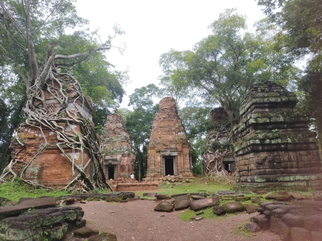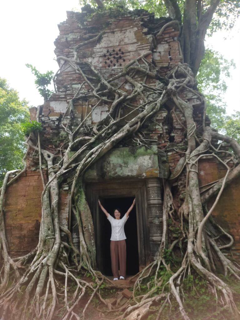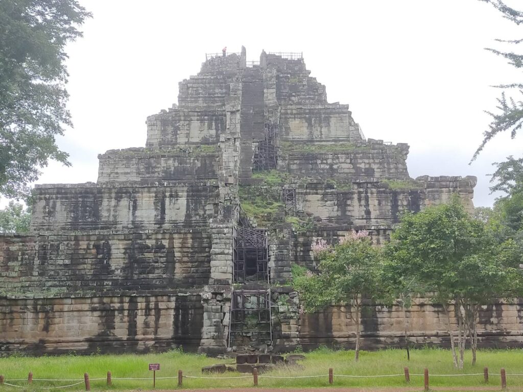 この遺跡はピラミッド型でとても有名な遺跡でございます。シエムリアップ町からちょっと遠いですけど、毎日観光客が多いです。皆様カンボジアに旅行したら、是非コーケー遺跡まで観光してください。