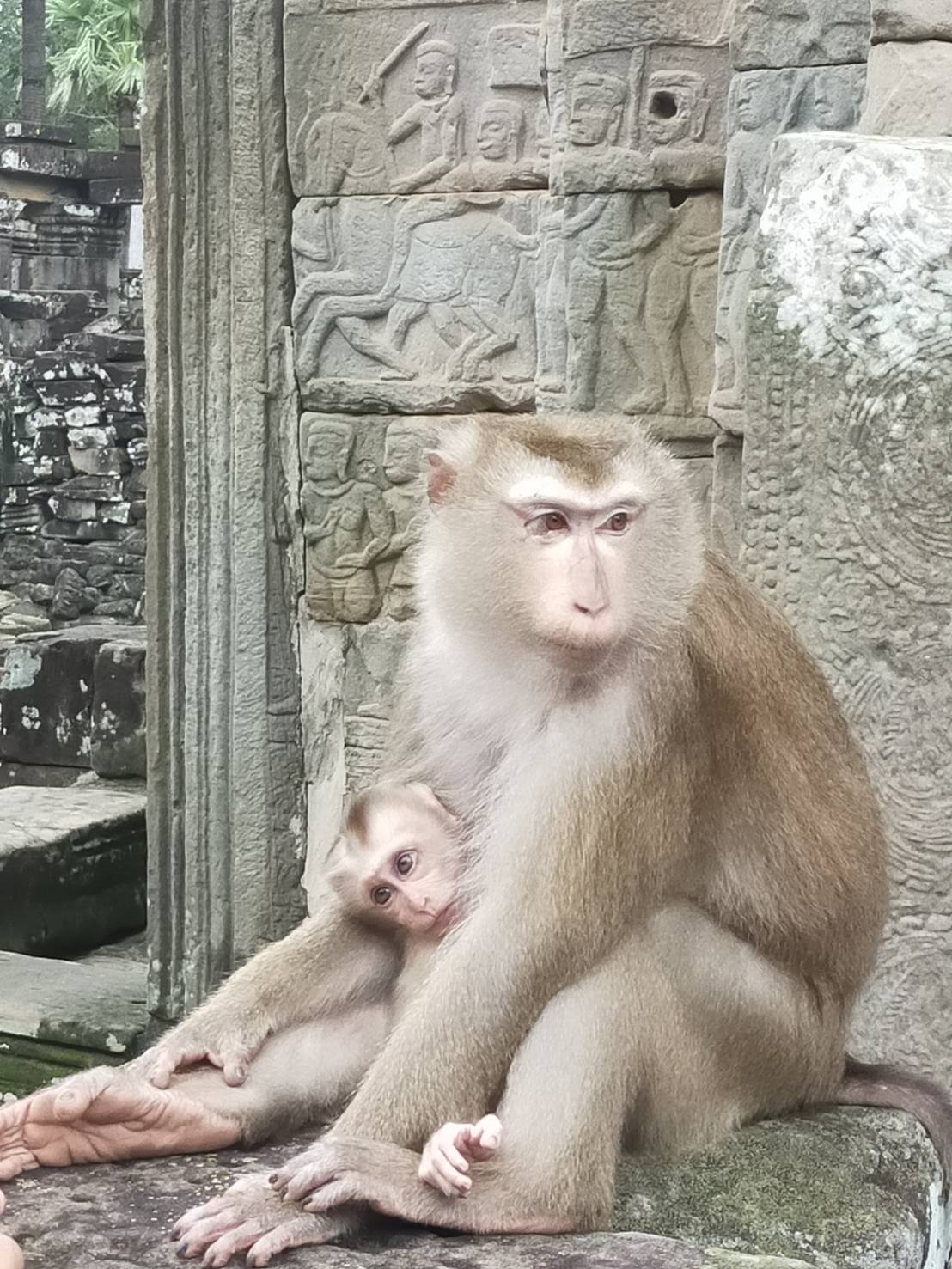 皆様こんにちは。私はカンボジア政府公認の日本語ガイドコサルと申します。皆様カンボジアに旅行したら、特にアンコールトムとアンコールワットに観光するときに猿が多いです。猿が多いですので、食べ物を持ったら危ないです。でも、食べ物を持ってなかったら大丈夫だと思います。それで、アンコールワットとアンコールトムに行かれるときに気をつけてください。猿たちは可愛いですよ。私は猿が大好きです。皆様も猿が好きですか?
