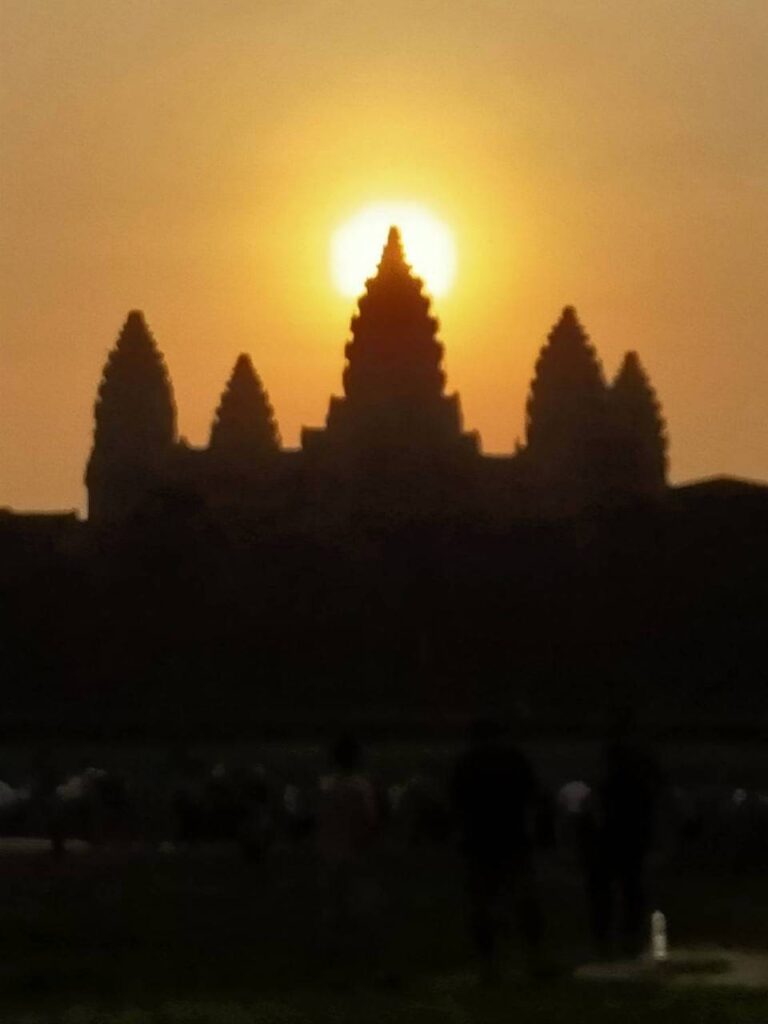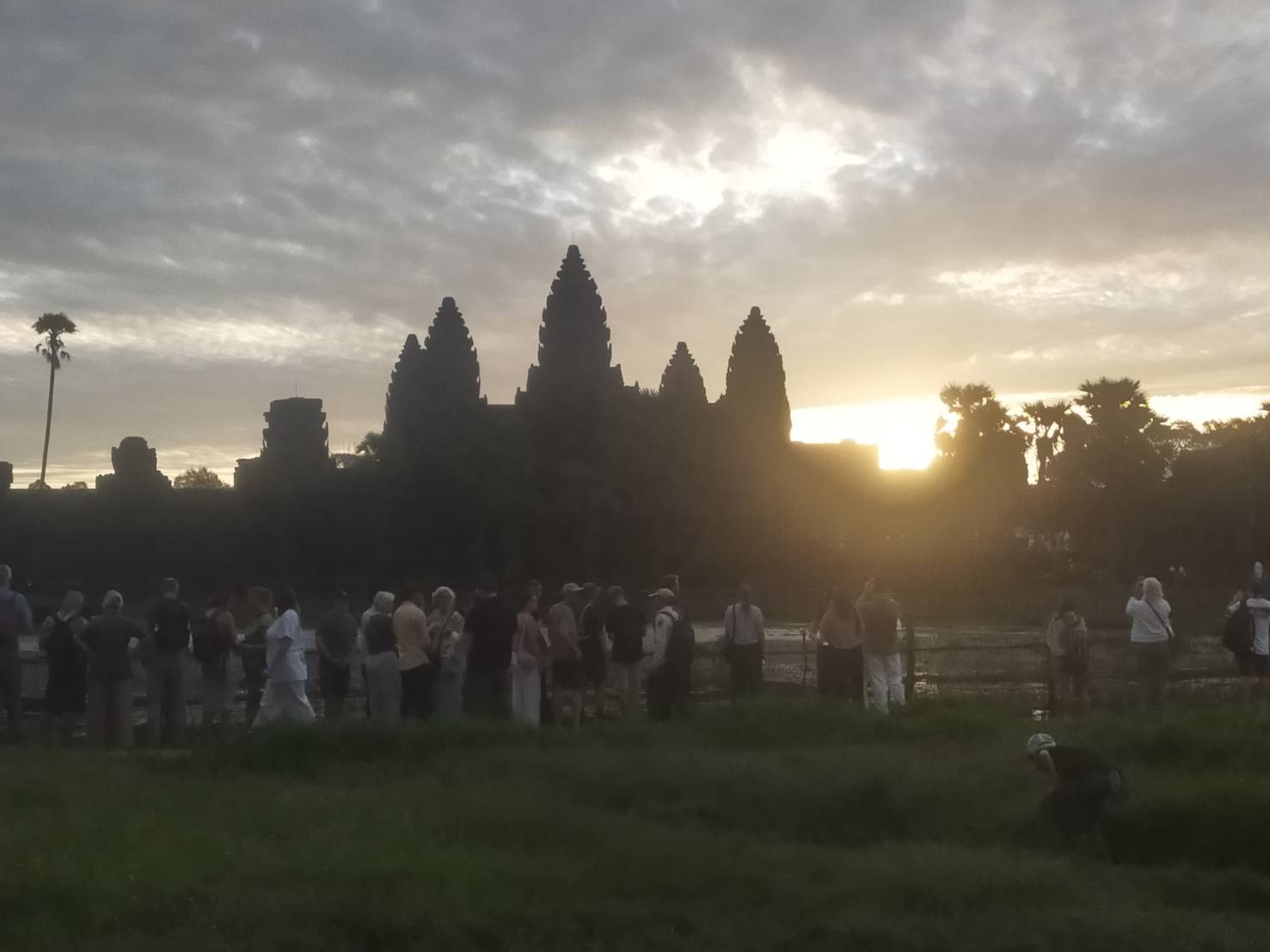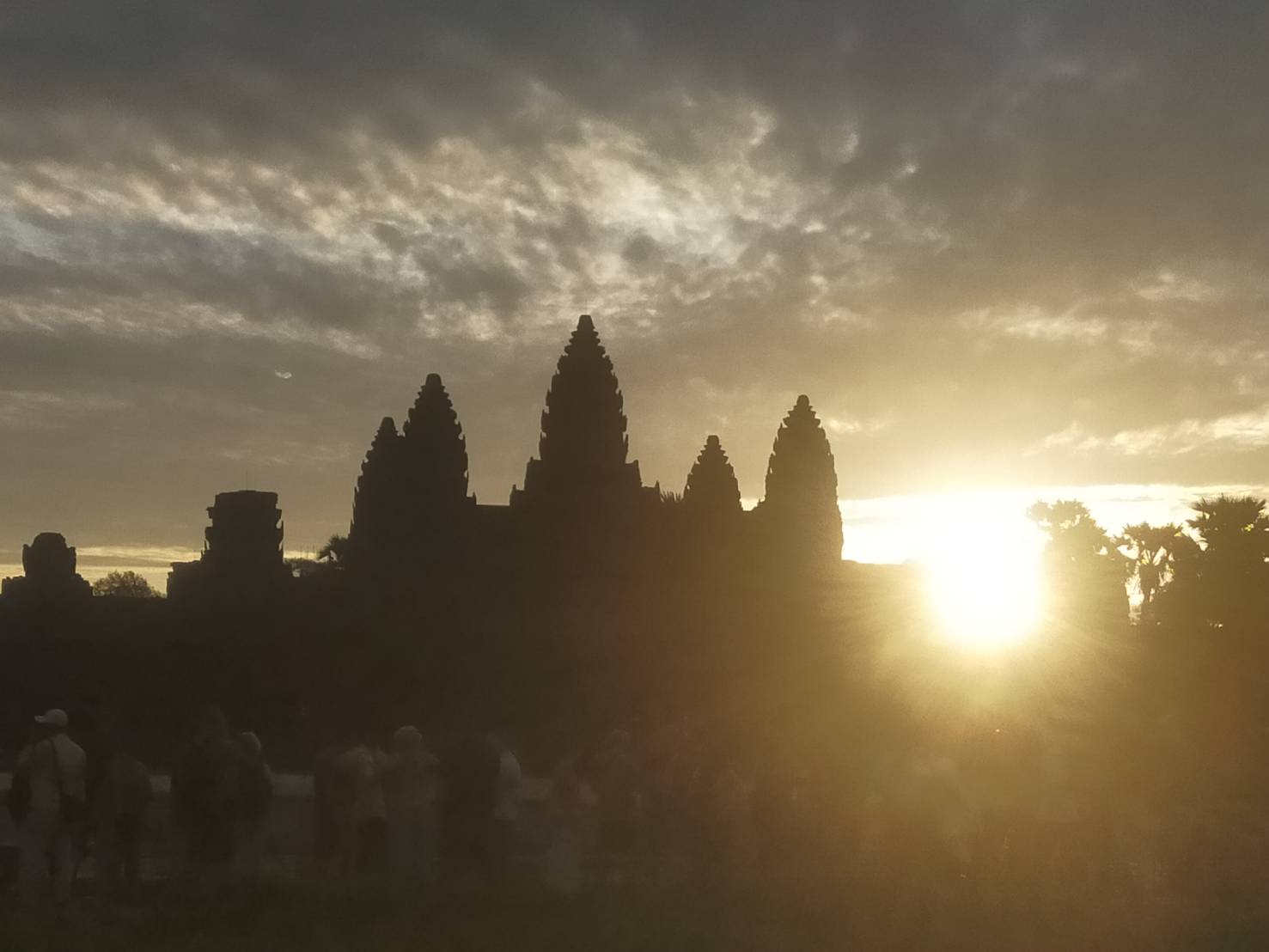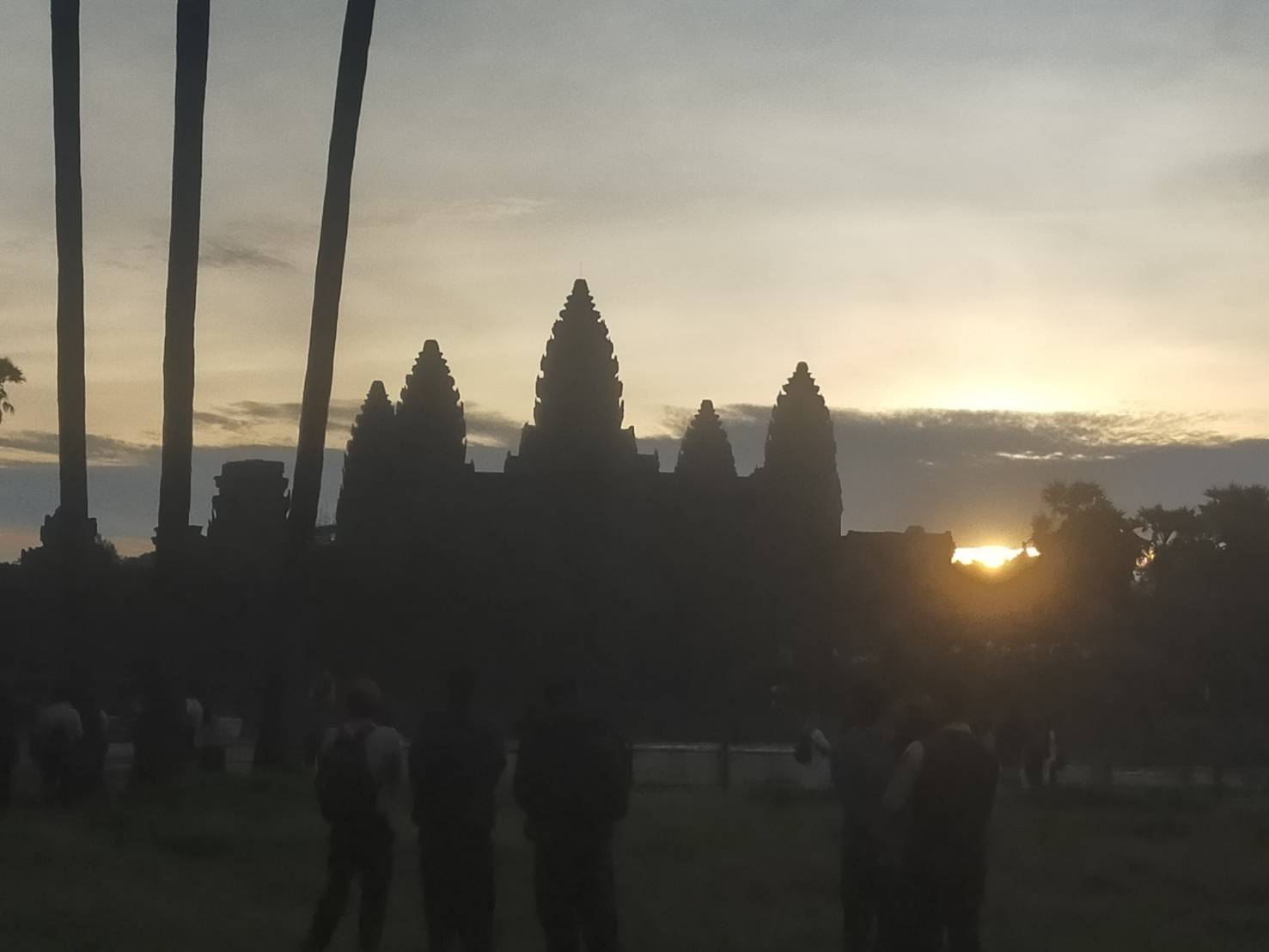 皆様こんにちは。私はカンボジア政府公認の日本語ガイドコサルと申します。22日に朝日鑑賞をしました。20年以上前は朝日を見る観光客様は日本人だけでしたが、今は色々な国の人も朝日を見に行くんだ。実は何処でも朝日を見ることができますけど、アンコールワットでの朝日は素晴らしいです。カンボジアの遺跡は殆ど東向きに建てられていますが、アンコールワットだけ西向きですので,アサヒのスポットです。でも朝日は一番きれいのは3月21日から23日までです。アンコールワットは正面から見たら塔が3本だけ見えるんですね。ちょうど中央の塔から太陽が登りますね。すごくきれいですよ。皆様カンボジア(アンコールワット)に旅行する時にぜひ朝日をご覧ください。