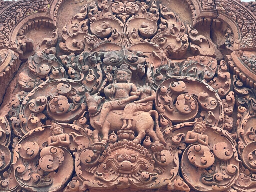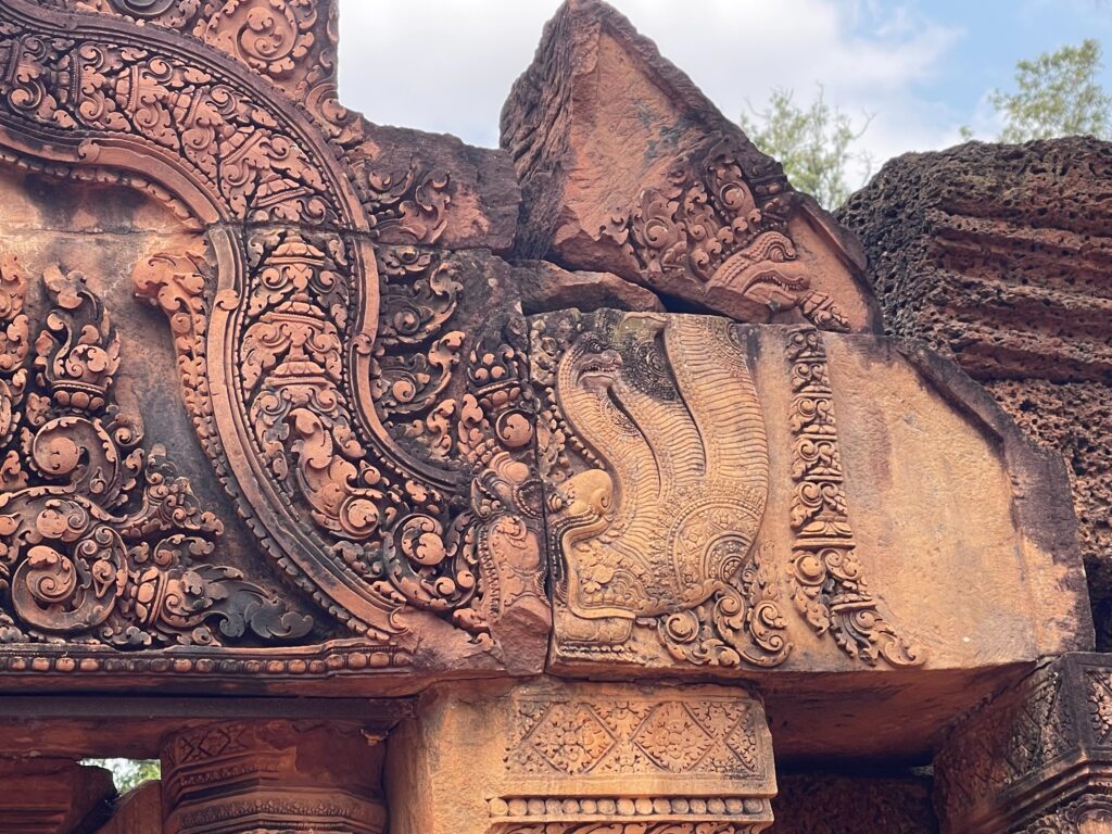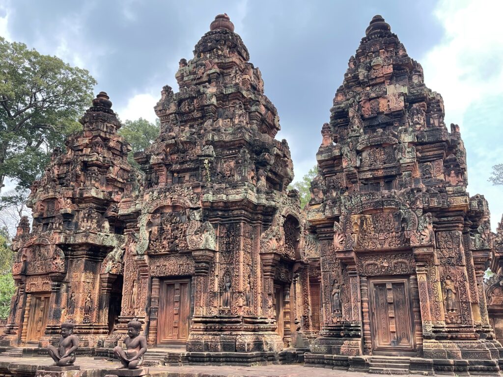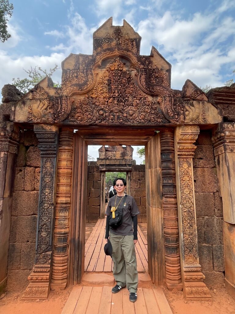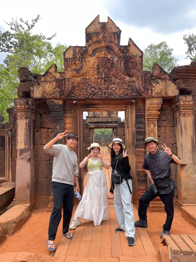 皆様こんにちは。皆様カンボジアに旅行したことがありますか。カンボジアは遺跡が多いです。有名な遺跡も多いです。例えばアンコールワット、アンコールトム、タプローム寺院などです。実は全国に1080ございます。でも、1080遺跡の中に東洋のモナ・リザと呼ばれるバンテアイスレイ遺跡だけ珍しいです。この遺跡だけ赤い石で建てられたんです。ほかの遺跡は大体白い砂岩で建てられたんですよ。彫刻も細かくてきれいです。シエムリアップ町から36キロぐらいでちょっと遠いですけど毎日観光客が多いですよ。プノンペンの人はシエムリアップ州に来たらいつも子供たちを連れて行くんです。皆様カンボジアにいらっしゃったらぜひバンテアイスレイ遺跡まで観光ください。