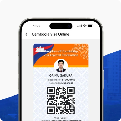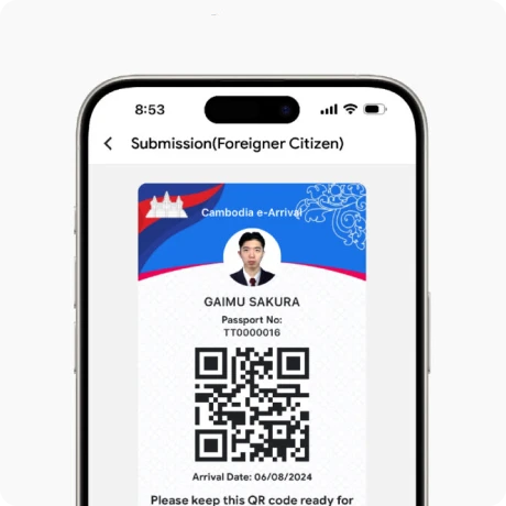ビザの申請をオンライン上で事前し、カンボジアの空港に到着後、e-VISA(QRコード)を提示します。